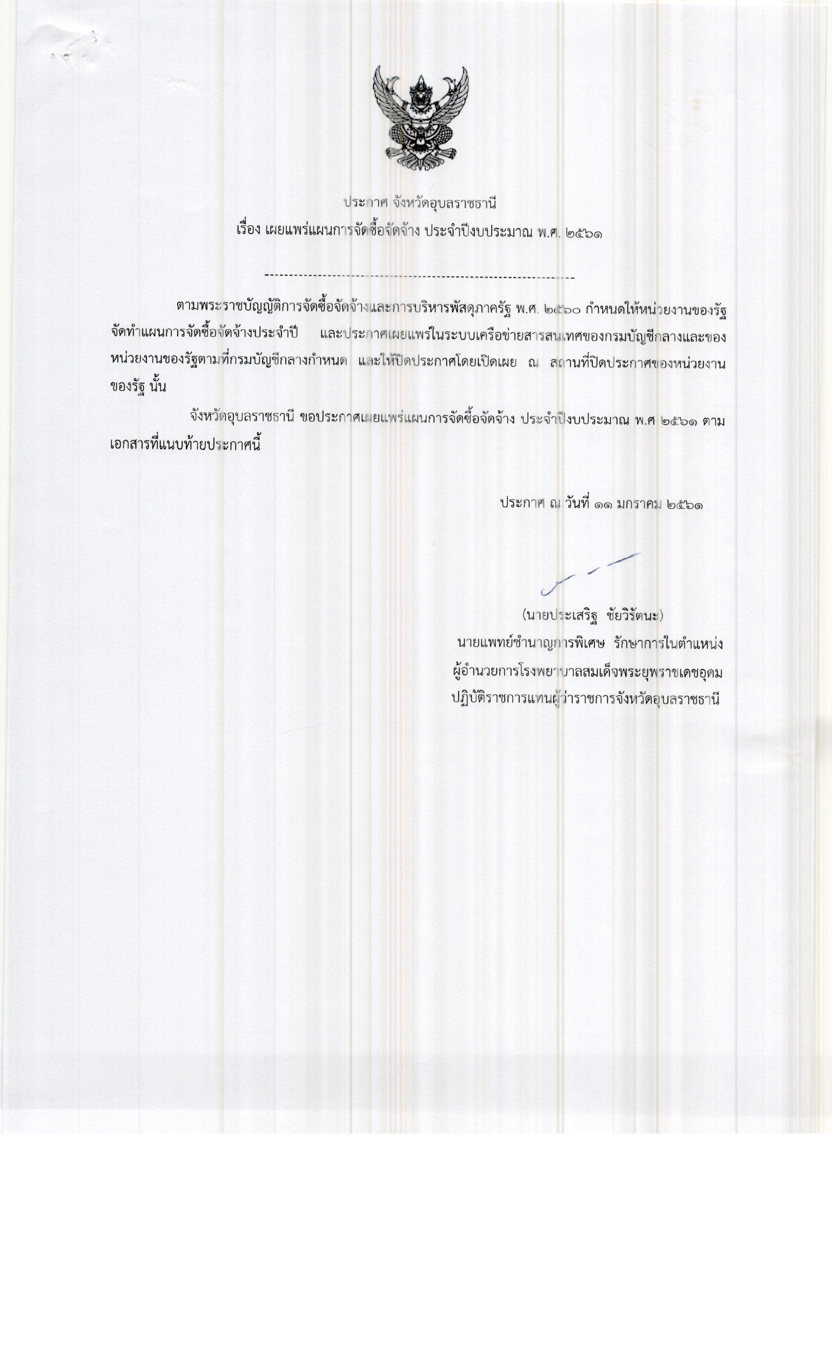 ประกาศเผยแพร่แผนการจัดซื้อครุภัณฑ์ทางการแพทย์ 5 รายการ