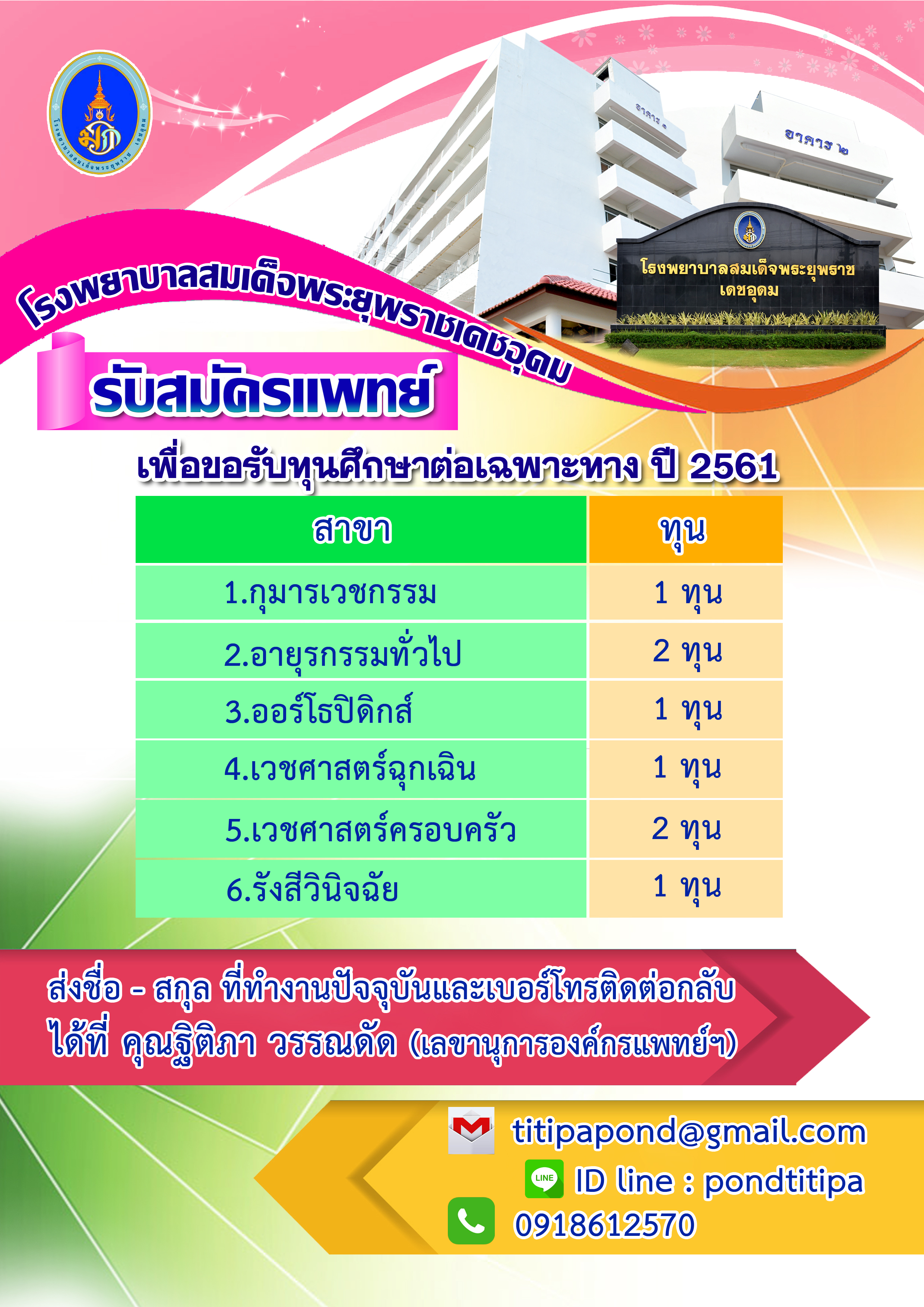 ส่งชื่อ-สกุล ที่ทำงานปัจจุบันและเบอร์โทรติดต่อกลับได้ที่ คุณฐิติภา วรรณดัด(เลขานุการองค์กรแพทย์ฯ) โทร. 0918612570