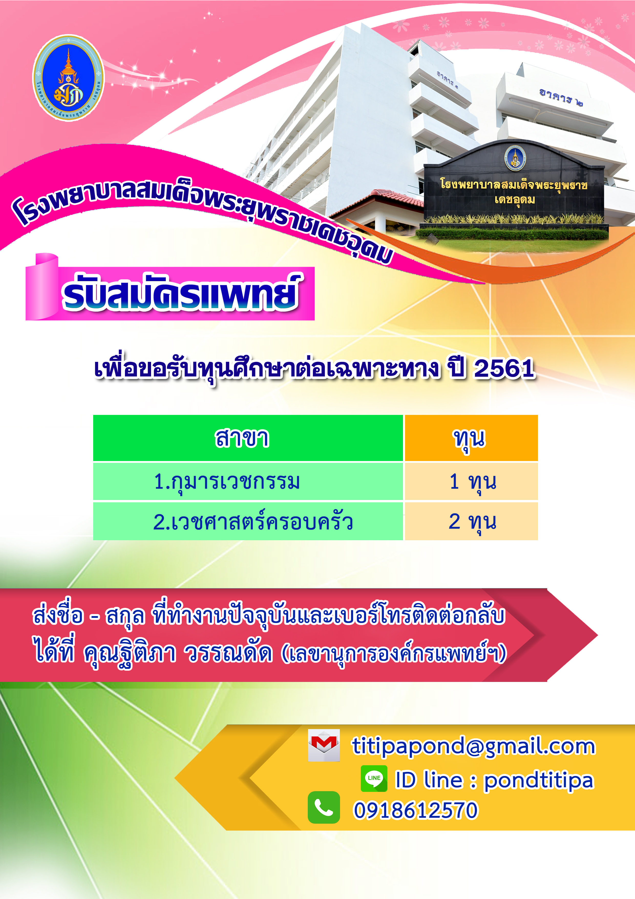 รับสมัครแพทย์เพื่อขอรับทุนการศึกษาต่อเฉพาะทาง ปี 2561